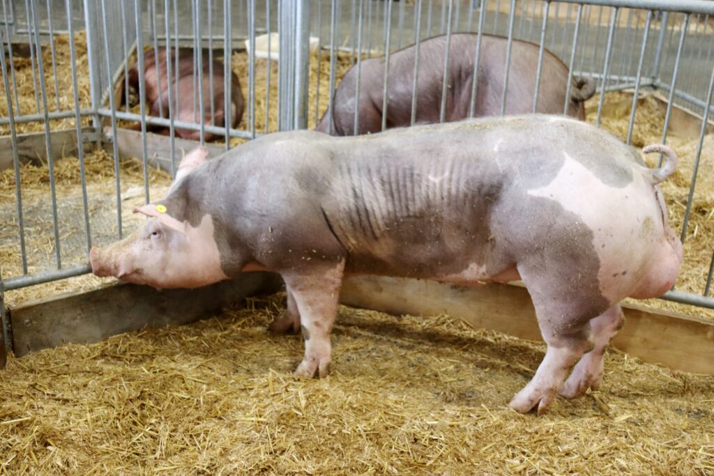 Z mateřských plemen stojí za komentář i všechny prasničky mateřských plemen, včetně kříženek F1 generace. Všechny mají alespoň osm struků na každé straně mléčné lišty prasničky a je na nich tak velmi dobře vidět dlouhodobý důraz na zlepšování tohoto znaku, který významně promlouvá do dobrých výsledků v dochovu. Také zvířata otcovských plemen se měla čím pochlubit. Například všichni kanečci plemene pietrain se vedle svých obvyklých kvalit v oblasti vysokého podílu libového masa, které odpovídá úrovni až 67,3 %, a výborného denního přírůstku odpovídajícího 1300 g v testu, mohla pochlubit skvělými výsledky v konverzi. Nejlepšího výsledku dosáhl kaneček číslo 5801436 z chovu společnosti Farma ORYX, spol. s r. o., který na každý kilogram přírůstku potřeboval jen 2,16 kilogramu krmiva. Přednosti plemene skvěle ukazovala i kolekce prasat duroc, jejichž největší devizou je tvrdost a odolnost. Silná kostra, a přitom výborné přírůstky od 1100 do 1300 g za den, byly na vystavovaných zvířatech zřetelně vidět,“ doplnil Ing. Stibal.