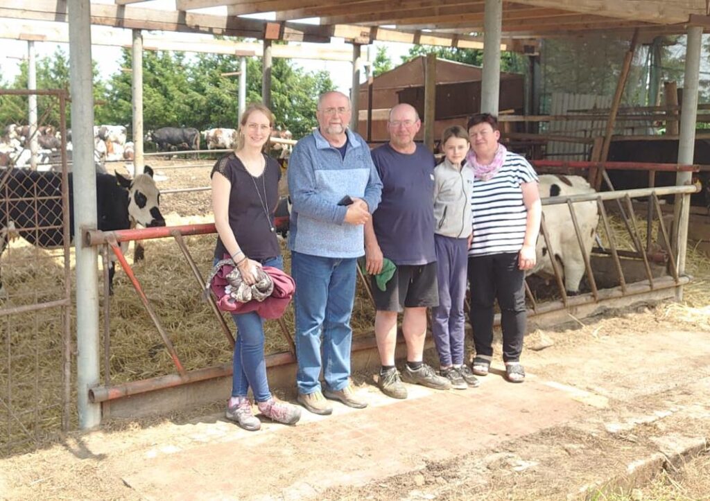 V roce 2025 navštívila v rámci vzájemné výměny zkušeností a prospěšných setkání našich i francouzských chovatelů normandského skotu paní Sixtine Personová, technička společnosti Synetics a současně manželka jednoho z nejlepších normandských chovatelů Francie.