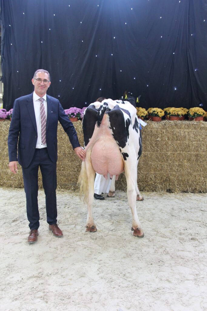 Sylvain Durand následně udělil titul rezervní šampionka (vicešampionka) plemenici VILEMOV FIONA po otci NEDREBO NXB-673 od vystavovatele ZS Vilémov, a. s. VILEMOV FIONA (katalogové číslo 59) se rovněž představila v silně obsazené kategorii krav na druhé laktaci. Narodila se 16. ledna 2022. Její produkce na první laktaci (295 dní) činila 15 485 kg mléka. Tuk v mléce dosáhl 4,07 % (630 kg) a bílkovina 3,33 % (515 kg). Její celkový exteriér, upnutí vemene a chodivost byly podle rozhodčího také excelentní.*